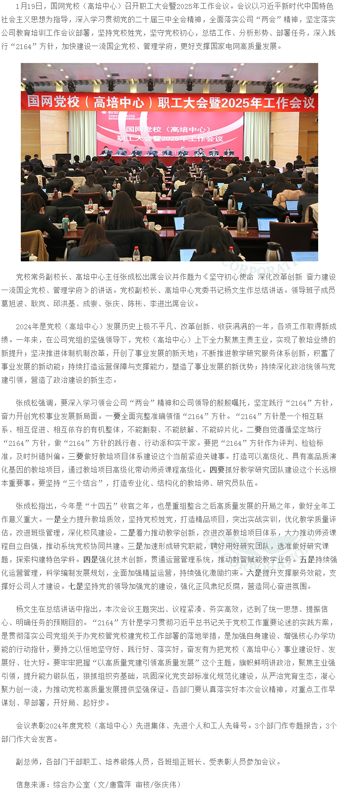 國網(wǎng)黨校(高培中心)職工大會(huì)暨2025年工作會(huì)議召開